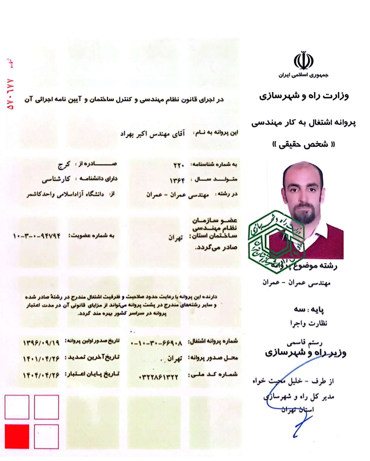 پروانه نظام مهندسی
